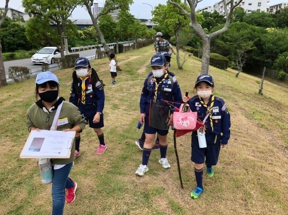 待ちに待った、活動再開! 5月から体験会を待ってもらっていた4人の体験スカウトを迎え、ハイキングを行いました。隊長がオススメのお散歩コースをポイントハイクに仕立て、緑いっぱいの学園都市で、隠れた名所を探します。 カブ隊の活動状況へ スカウト、体験者たちは、感覚を研ぎ澄ませて観察したり、探索したり、計測したり、たくさんの問題をクリアしました。 大きな木の中に何か隠されてる? 緑がキレイ!一生懸命歩きます! 一体これは何だ? 優秀賞おめでとう! ありがとう、ウォー! 新しい仲間が増えるのを、皆楽しみにしています! ▲ ページトップへ